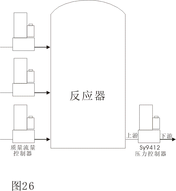 质量流量控制器精确地测量和控制配气工艺所需的不同气体的流量,在反应器中得到固定比例的混合气体。压力控制器通过改变反应器输出气体的排量,保持反应器中压力的恒定,或按工艺要求的压力曲线控制反应压力。(附图26)